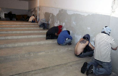 תומכי ממשל כפותים לאחר השתלטות החיזבאללה (צילום: AFP)