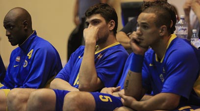 הפנים אומרות הכל. ספסל מכבי ת"א בפוזה אופיינית (צפריר אביוב)