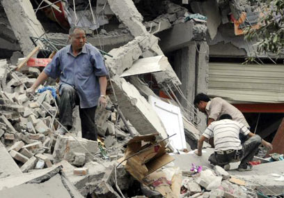 עבודות החילוץ בסין. המבנים האולימפיים עומדים על תילם (צילום: רויטרס)