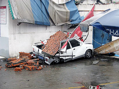 קיר לבנים שקרס על מכונית בדוג'יאנגיאן (צילום: רונן מדזיני)