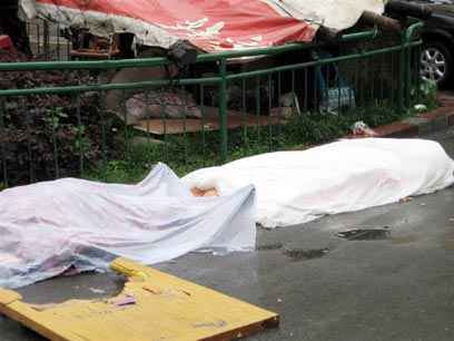 גופות בצד הכביש לדוג'יאנגיאן. מניין ההרוגים מאמיר (צילום: רונן מדזיני)