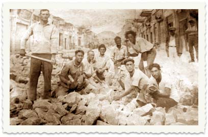 1. שלמה קפלן (רביעי משמאל) בעבודת סלילה ליד בית רומנו, תל אביב, 1928