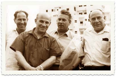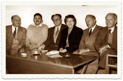 8. משמאל: המנצח הנרי קלאוזנר, שלמה קפלן, המנצח השווייצרי ד"ר הנס ריימן, המלחין עמנואל עמירן