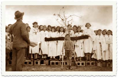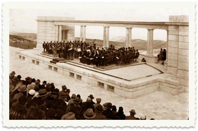 7. הר הצופים, ירושלים, טקס פתיחת תיאטרון המעלות. המנצח פורדאהוס בן-ציסי. פסח, תרצ"ג, 1933