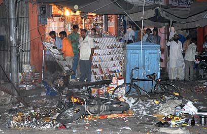 זירת אחד הפיצוצים בג'ייפור (צילום: AFP)