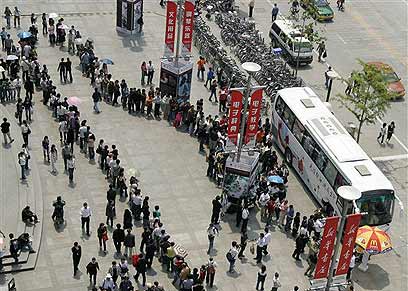 סינים בתור לתרום דם בבייג'ינג, היום (צילום: AP)