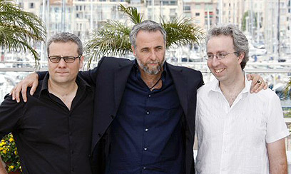 המאייר דויד פולונסקי, הבמאי ארי פולמן והאנימטור הראשי יוני גודמן בטיילת בקאן (רויטרס)