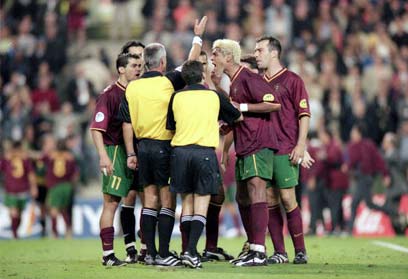 3. לפורטוגלים היסטוריה ארוכה ולא נעימה עם אנשי המשרוקית. להלן שני מקרים מפורסמים: במשחק המכריע במוקדמות מונדיאל 98', מול גרמניה, הורחק רוי קושטה