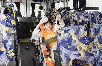 שלומי בהסעה בדרך לבית הספר (צילום: עידו ארז)