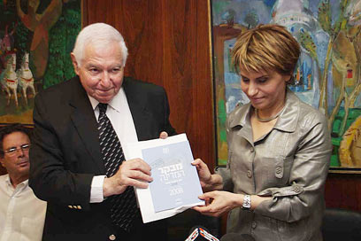 המבקר מגיש את הדו"ח ליו"ר הכנסת (צילום: גיל יוחנן)