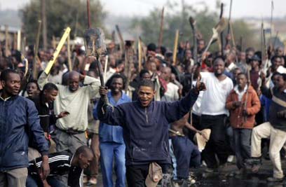 גל האלימות נגד זרים בדרום אפריקה מסרבת לדעוך: שוטרים ירו היום (ג') כדורי גומי לעבר מאות מתפרעים בשכונת עוני בפאתי יוהנסבורג בניסיון למגר את האלימות כלפי מהגרים מהארצות השכנות שגבתה מאז השבוע שעבר את חייהם של לפחות 24 בני אדם. מלבד אלפי מהגרים הבריח המשבר גם משקיעים זרים והוביל לצניחת המטבע המקומי, הראנד.