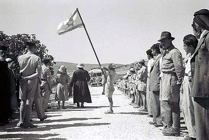 טקס פתיחת הכנס הארכיאולוגי בגוש חלב, 1949 (צילום: פריץ כהן, לע"מ)