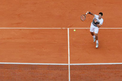 נובאק ג'וקוביץ' מנחית, בסיבוב הפתיחה בפריז (צילום: AFP)