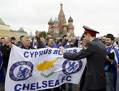 במוסקבה הם כבר היו מאחוריו. אוהדי צ'לסי (צילום: רויטרס)
