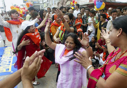 חוגגים את שחר הרפובליקה החדשה בקטמנדו, היום (צילום: AP)