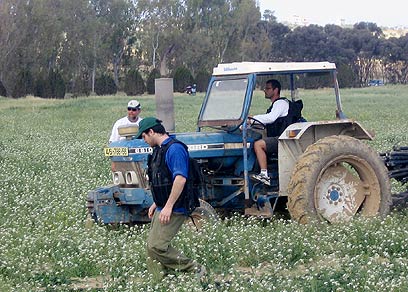 עובדים תחת אש. חקלאים בעין השלושה (צילום ארכיון: יואל מרשק)