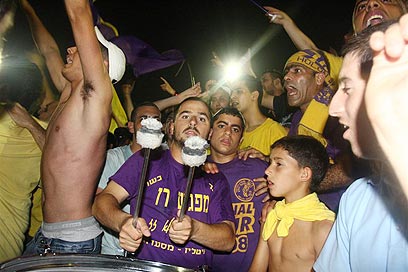 הסגולים חוגגים. את הלילה הזה הם יזכרו כל החיים (צילום: אלי אלגרט)
