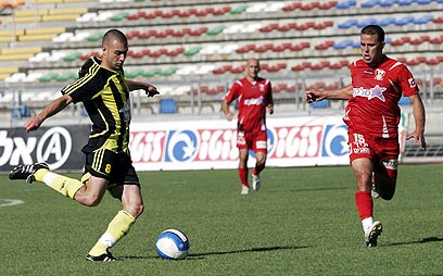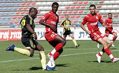 אבירם ברוכיאן מנסה לבעוט. חאלד חלאילה מסתער (דודי ועקנין)