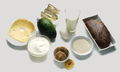 (2 כפות), כוס חלב (מועשר בסידן), ביצה, 3 תאנים מיובשות, כוס אבוקדו,