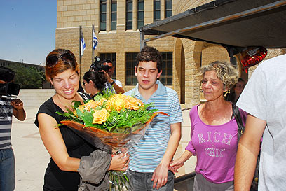 החברים והמשפחה חיבקו את להב כשיצא (צילום: הרצל יוסף)