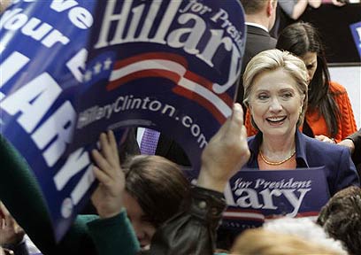 לאחר שנבחרה מחדש בבחירות אמצע הכהונה בנובמבר 2006, לא הסתירה את שאיפותיה הנשיאותיות, ושבועות ספורים אחר כך, הכריזה רשמית, "אני במירוץ, ואני רוצה לנצח". שבועיים לאחר מכן, הצטרף באופן רשמי גם ברק אובאמה למירוץ. הסקרים הראשונים שנערכו בארה"ב ניבאו לה ניצחון מוחץ וברור – והראו כי היא גוברת בנקל על כל מועמד אחר שיתמודד מולה, יהיה זה רפובליקני או דמוקרטי.