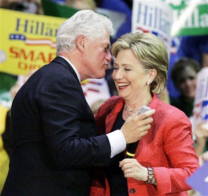 עם ביל קלינטון במהלך מסע הבחירות. הסקרים היו לטובתה (צילום: AP)