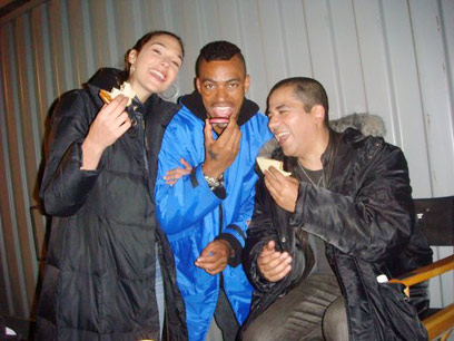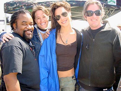 חוץ. צוות מגובש. נציגת ישראל בניכר. משמאלה ניצבת גם הכפילה, שבזמן טסטים החליפה אותה כדי שישארו לה כוחות לטייקים האמיתיים. אקשן.