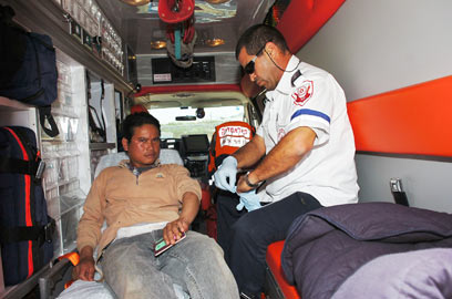 העובד הזר שנפצע מקבל טיפול (צילום: שי שמואלי)