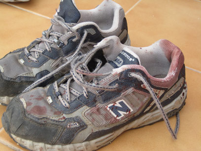 הנעליים ספוגות בדמו