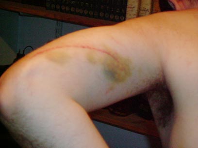הנערים לא ויתרו והמשיכו להכות אותו. "לפתע, אחד מהם שלף סכין ואיים שידקור אותי אם לא אעזוב את הפאוץ'. למרות זאת, לא עזבתי אותו. המוכר ניסה לעזור לי ואיבדתי את ההכרה". הוא התעורר לאחר שעובדי הקיוסק שפכו עליו מים. שלושת התוקפים כבר לא היו במקום.