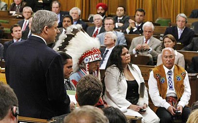 חודשים ספורים אחרי שראש ממשלת אוסטרליה התנצל בפני האבוריג'ינים על השלכות המדיניות שביקשה לשלבם בחברה המודרנית, נשא עמיתו הקנדי נאום דומה. "הממשלה מכירה עתה בכך שהשלכותיה של מדיניות בתי הספר האינדיאנים הייתה שלילית מאוד", אמר בנאום משודר מהפרלמנט