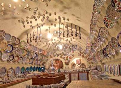 למחרת נוסעים 20) דקות בדולמוש מגרמה) לאבנוס ,(Avanos) עיירת קדרים מימי קדם, עוד מימי החיתים. רחובותיה מלאים בחנויות קרמיקה גם היום. גאליפ, נצר למשפחת קדרים ואומן בזכות עצמו, יושב ליד האובניים, לש גוש חומר אדמדם ובתוך דקות יוצר כד מושלם. החנות שלו, ,Chez Galip מול בית הדואר, מצדו הצפוני של ") Kizilirmakהנהר האדום,(" היא מבוך של כוכים, שכל אחד מהם עמוס בשורות של כלי חרס משובבי עין. גאליפ מכבד את הקונים בבאזלאמה, מאפה קפדוקי ממולא בגבינה או בתפוחי אדמה.