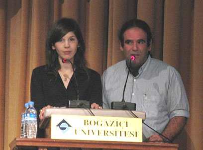 איתי קנטור ויעל חרסונסקי מציגים את "שתיקת הארכיונים" בכנס (צילומים: מרב יודילוביץ')