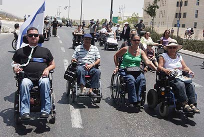 הנכים בהפגנה בירושלים (צילום: גיל יוחנן)