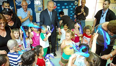 לאחר הפגישה ביקר הנשיא בגן "תות" שבקיבוץ, שם שוחח עם הילדים על השלום ועל ירי הרקטות. הילדים שרו לכבוד הנשיא את "שיר לשלום" וסיפרו לו כיצד הם מתנהגים כשהם שומעים אזעקת צבע האדום. פרס אמר לילדים שהם "אמיצים ויגדלו להיות אנשים חזקים".