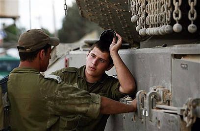 חיילי צה"ל, אמש מחוץ לרצועת עזה (צילום: AP)
