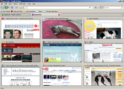 אחרי ההתקנה של Speed Dial, לוחצים על כל אחת מתשע הקוביות הממוספרות ומגדירים את האתר הרצוי. התמונה שלו תתווסף אוטומטית, אבל אפשר להחליף אותה במשהו ששמרתם על הדיסק הקשיח – תמונות של הנכד או החתולה, למשל. מומלץ במיוחד לגולשים מבוגרים, או משתמשים שאינם דוברים אנגלית היטב ומתקשים בהקלדת הכתובת בדפדפן בכל פעם מחדש.