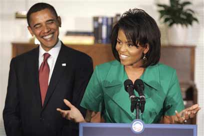 מישל לצד בעלה ברק אובאמה. הפכה למטרה (צילום: AP)