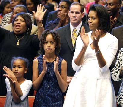 מישל אובאמה ושתי בנותיה בכנסיה, השבוע (צילום: AP)