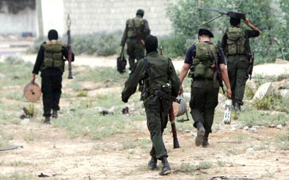 אנשי חמאס נוטשים את העמדות, הבוקר (צילום: AFP)