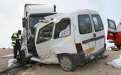 התאונה שבה נהרגו שי ויוסי ז"ל (צילום: אבי מועלם)