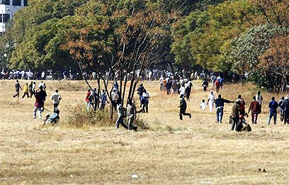 רבים מהחמושים נשאו אלות ולבשו בגדים בצבעי מפלגת השלטון. גורמים במפלגת האופוזיציה מסרו כי החמושים אף היכו פעילי אופוזיציה שניסו להגיע למקום העצרת. עם זאת, הרשויות לא אישרו את הדיווח. סביב אתר העצרת נסעו משקיפי בחירות ממדינות אפריקה הדרומית - אך איש מהם לא ניסה להתערב. גם המשטרה לא ניסתה להתערב ולפזר את החמושים.