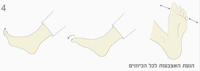 תמונות 2, 3, 4: הנעת הקרסול וכף הרגל לכל הכיוונים מסייעת בהפעלתשרירים עמוקים המניעים ודוחפים את זרם הדם כלפי מעלה ובכך