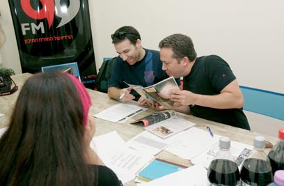 גבאי ולינוי בר גפן היו הראשונות לקבל את פניי בבוקר חמישי שבו נקבע ביקורי, היישר אחרי התקיפה על איציק זוהר בליל אמש, ההתנקשות בעו"ד יורם חכם, ועוד דברים שאגלה לאט לאט. להגיע לפני הקפה הראשון היישר ללוע הפיות של שתי הנשים הצעירות הללו שמנהלות ומראיינות את העולם משבע אפס אפס, זה כמעט מעליב. אני מתנחמת בעובדה שהן מורגלות בפעילות שיא בשעות כאלה - בר גפן מניסיונה בתוכניות הבוקר, וגבאי כאם לתינוקת חדשה, ואני משתדלת להשלות את עצמי שגם אני הייתי יכולה להגיע לקצב הזה עם קצת יותר קפאין במערכת. הרכש הזה, כמו רבים מאלה שאפגוש היום, הוא רעיון של איש החדשות הוותיק (והיום גם "מפיק הטלנובלה "חשופים") רם לנדס, יו"ר הדירקטריון החדש של רדיו FM99, אחד המינויים המשמעותיים של הבעלים החדשים. לפני שנתיים רכש גאידמק את רוב השליטה בתחנה העזובה, שאז עוד כונתה אסקייפ, ומאז תהליך השינוי מתקדם בצעדים קצובים, ומהותו הכללית היא המעבר מרדיו מוזיקלי ל"טוק רדיו", כזה שאנשים מדברים בו.