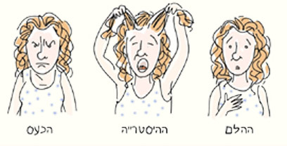 שלב ההיסטריה: אמא'לה... אני לא אצא מזה בחיים... זה בלתי אפשרי... אני אמות בחודשיים האלה... כולנו נמות... זה בלתי אפשרי... חם, חם כל כך... אוויר... עזרה... מישהו...