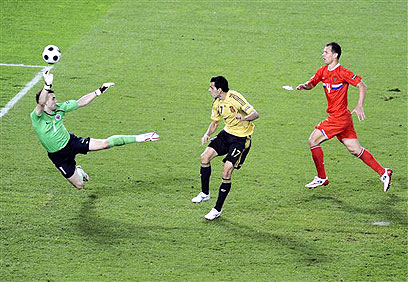 דקה 50: שתי הנבחרות חזרו מההפסקה מנומנמות משהו. הספרדים התעוררו ראשונים עם שער נהדר של צ'אבי הרננדס, מבישול של אנדרס אינייסטה שמצא אותו בכדור עומק אלכסוני. צ'אבי הגיע מאחור ונעץ ברשת - 0:1 לספרד.