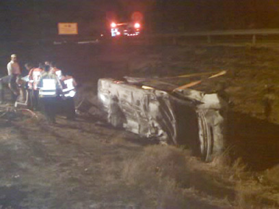 מקום התאונה סמוך למחלף נחשונים (צילום: מד"א ירקון)
