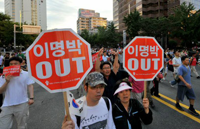מפגינים נגד בשר אמריקני בדרום קוריאה (צילום: AFP)