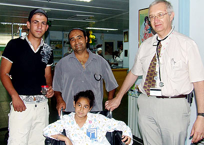 הנער והילדה שהוכשו, יחד עם אביה של הילדה ודר אנתוני לודר מנהל מחלקת ילדים במרכז רפואי זיו (צילום: חנה ביקל)