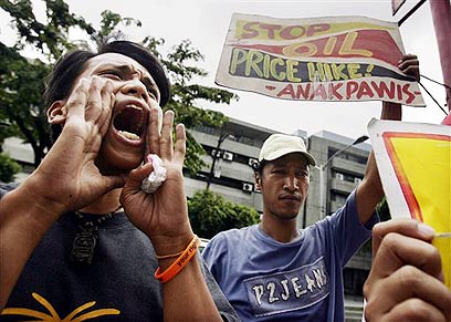 לא רק בישראל. מפגינים בפיליפינים על רקע מחירי הנפט (צילום: איי.פי)